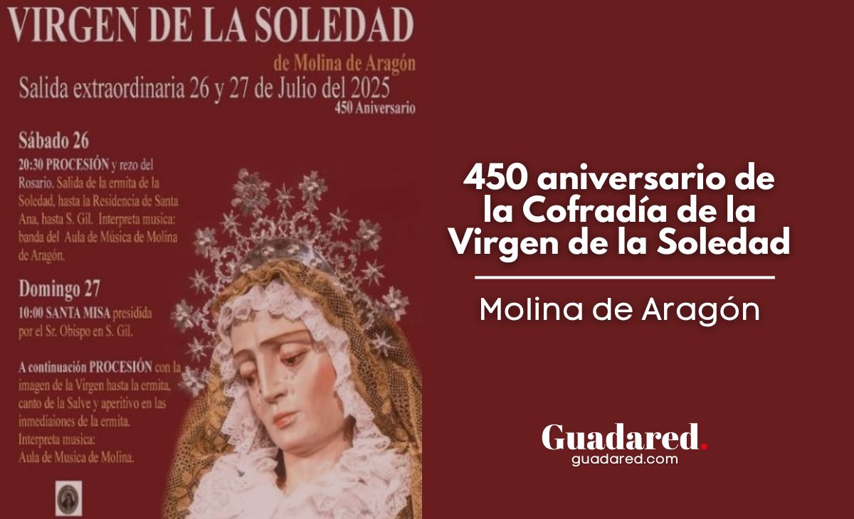 Este fin de semana, Molina de Aragón conmemorará uno de los momentos más importantes de su historia religiosa: el 450 aniversario de la Cofradía de la Virgen de la Soledad, una de las devociones más arraigadas en la localidad y especialmente en el barrio que lleva su nombre.