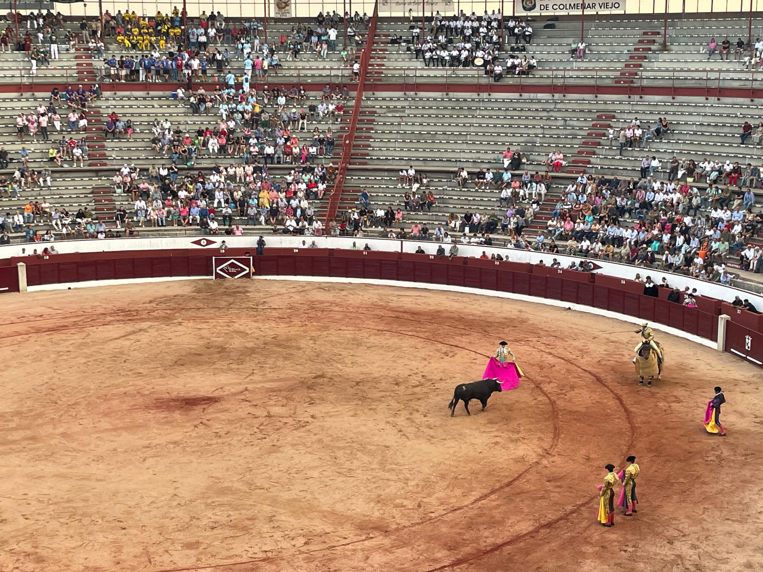 Mató de un terrible bajonazo. Antes que a torear, deberían de enseñar lo que es la vergüenza torera en las escuelas, para no levantar la mano con tal sartenazo. Silencio para novillo y novillero.