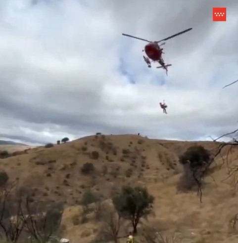La situación obligó a desplegar un amplio operativo de emergencias. El vehículo siniestrado quedó en una zona de monte complicada para los equipos terrestres, por lo que se movilizó el helicóptero de rescate del Grupo Especial de Rescate en Altura (GERA) de la Comunidad de Madrid.