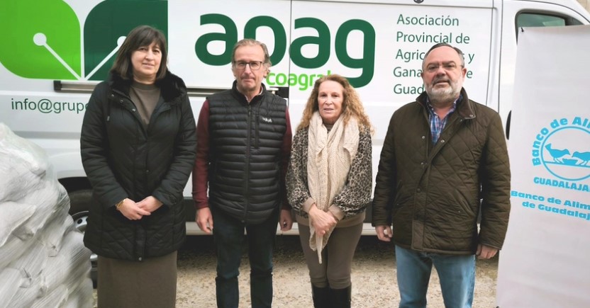 La entrega de los garbanzos fue realizada por Juan José Laso, presidente de APAG, y Antonio Torres, secretario general de la organización, quienes estuvieron acompañados de Victoria Huerta, referente agrario de CaixaBank. La donación fue recibida por Carmen Hombrados, responsable del Banco de Alimentos de Guadalajara, quien expresó su agradecimiento por el compromiso de APAG en la lucha contra la pobreza alimentaria en la provincia.
