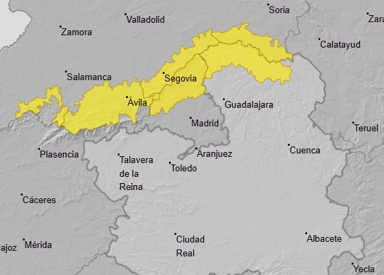 La Agencia Estatal de Meteorología (AEMET) ha emitido un aviso amarillo por nevadas en la provincia de Guadalajara, con acumulaciones de hasta 10 cm de nieve en 24 horas en las comarcas de la Serranía y la Alcarria.