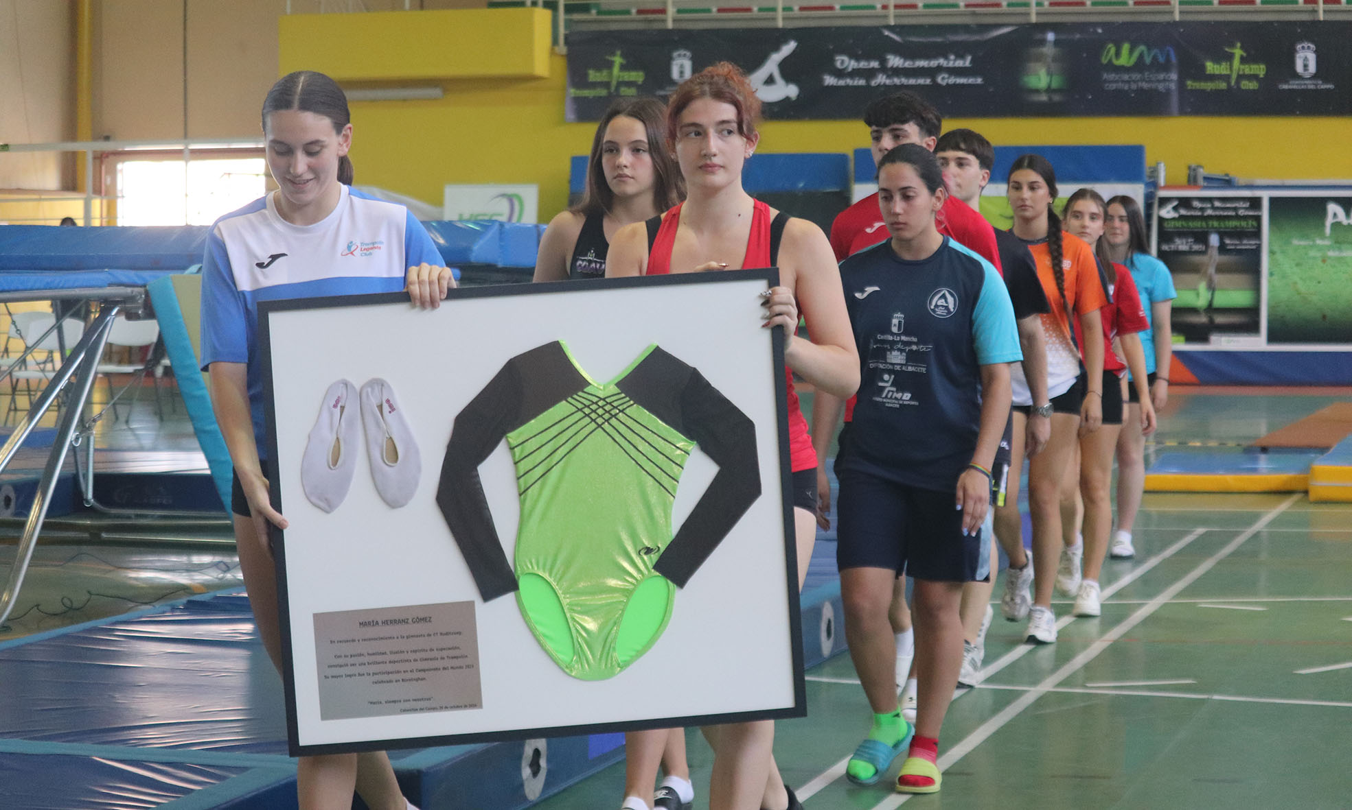 Este torneo, que combina competición de alto nivel con un profundo componente emocional, recuerda por segundo año consecutivo a María Herranz, joven gimnasta cabanillera fallecida en 2024 a los 17 años a causa de una meningitis. María, considerada una de las mayores promesas nacionales de este deporte, representó a España en un Campeonato del Mundo de gimnasia de trampolín y dejó una huella imborrable en su comunidad.