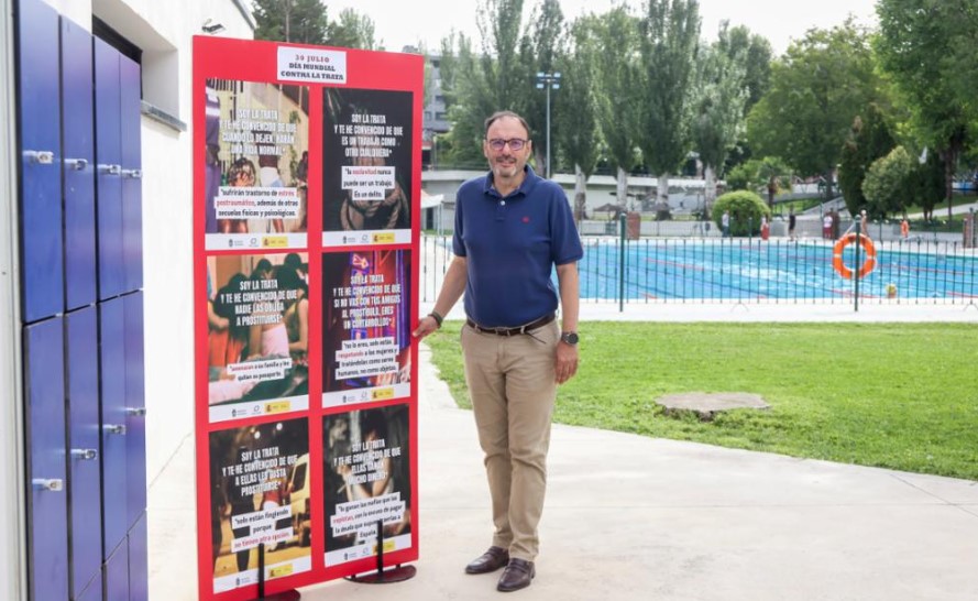 La piscina municipal de San Roque se ha convertido este verano en un espacio de reflexión y compromiso social con la instalación de una campaña de sensibilización contra la trata de personas, impulsada por el Ayuntamiento de Guadalajara.