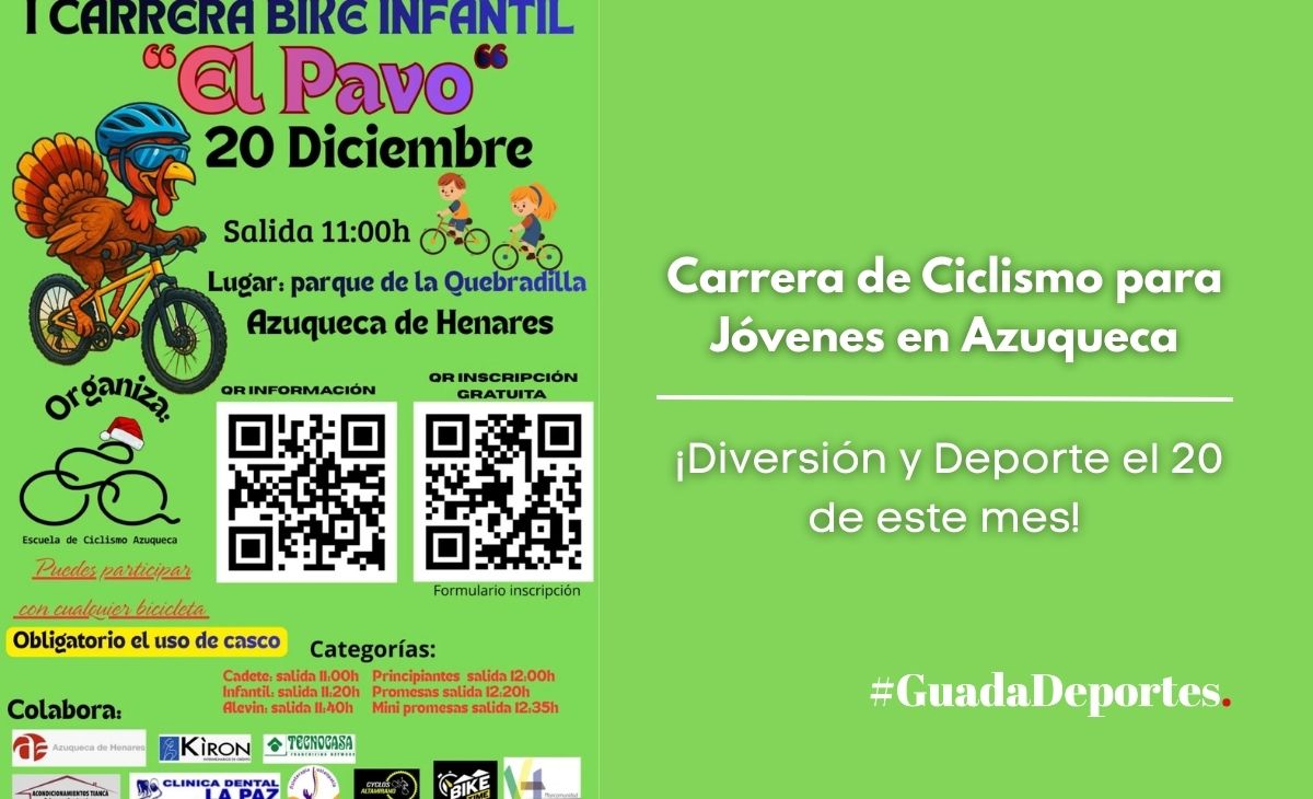 Si tienes entre 5 y 16 años y te apasiona el ciclismo, ¡este es el evento que no te puedes perder! El próximo 20 de este mes, el Parque de La Quebradilla en Azuqueca se llenará de energía, deporte y risas con una carrera de ciclismo abierta a todos los chicos y chicas con ganas de disfrutar de una jornada única.