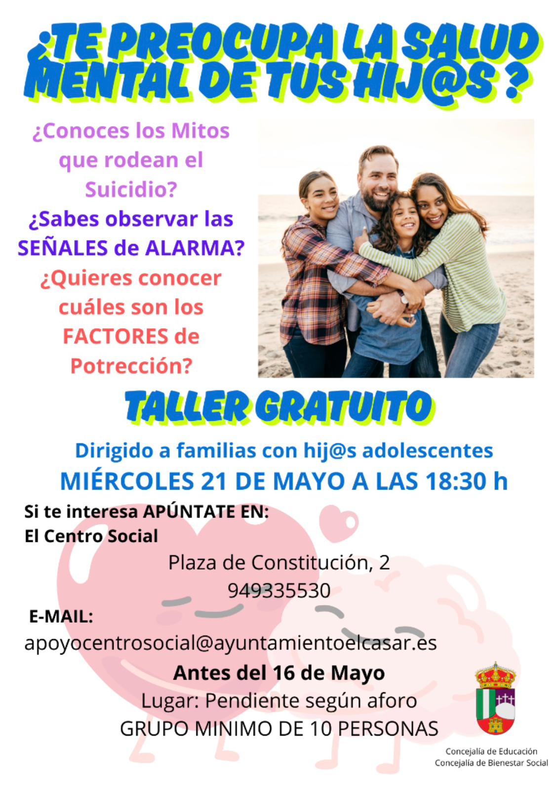 La Concejalía de Educación ha puesto en marcha esta iniciativa como parte de una estrategia municipal de sensibilización sobre salud mental adolescente, que también incluye talleres en centros educativos. Esta doble vertiente —trabajo con alumnado y con familias— busca crear una red de apoyo sólida para detectar y abordar a tiempo posibles problemas emocionales.