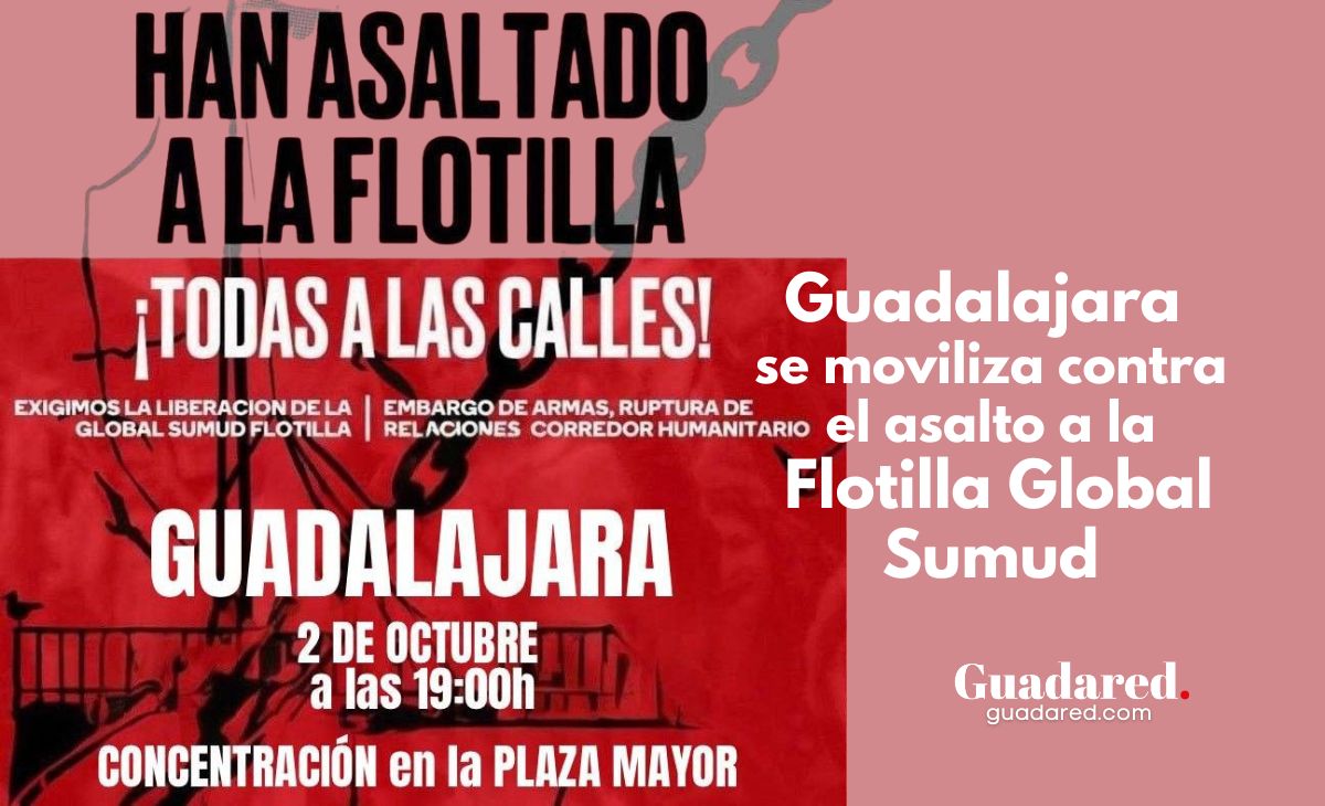 La Plataforma Guadalajara con Palestina ha convocado a los ciudadanos a una concentración urgente esta tarde, a las 19:00 horas, en la Plaza Mayor de Guadalajara, bajo el lema: “Han asaltado la flotilla. ¡Todas a las calles!”.