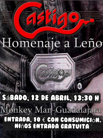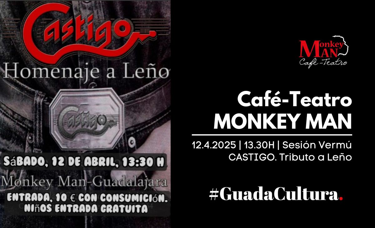 Hoy, sábado 12 de abril a las 13:30, el Café Teatro Monkey Man de Guadalajara se convierte en el centro del vermut rockero más auténtico del fin de semana. La cita perfecta para quienes disfrutan de una buena copa, buen ambiente… y el mejor rock urbano de todos los tiempos. CASTIGO, la banda tributo por excelencia a Leño, aterriza en la ciudad con un directo que promete hacernos vibrar al ritmo de los grandes clásicos del grupo madrileño y algún que otro temazo de Rosendo.