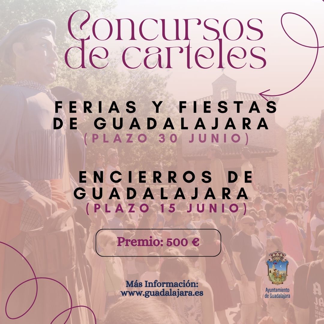 El Ayuntamiento de Guadalajara convoca a artistas y diseñadores a participar en los dos concursos de carteles oficiales para las Ferias y Fiestas de septiembre 2025 y los Encierros de Guadalajara 2025. Los ganadores obtendrán un premio de 500 € y sus obras serán la imagen oficial para la campaña de difusión de estos eventos.