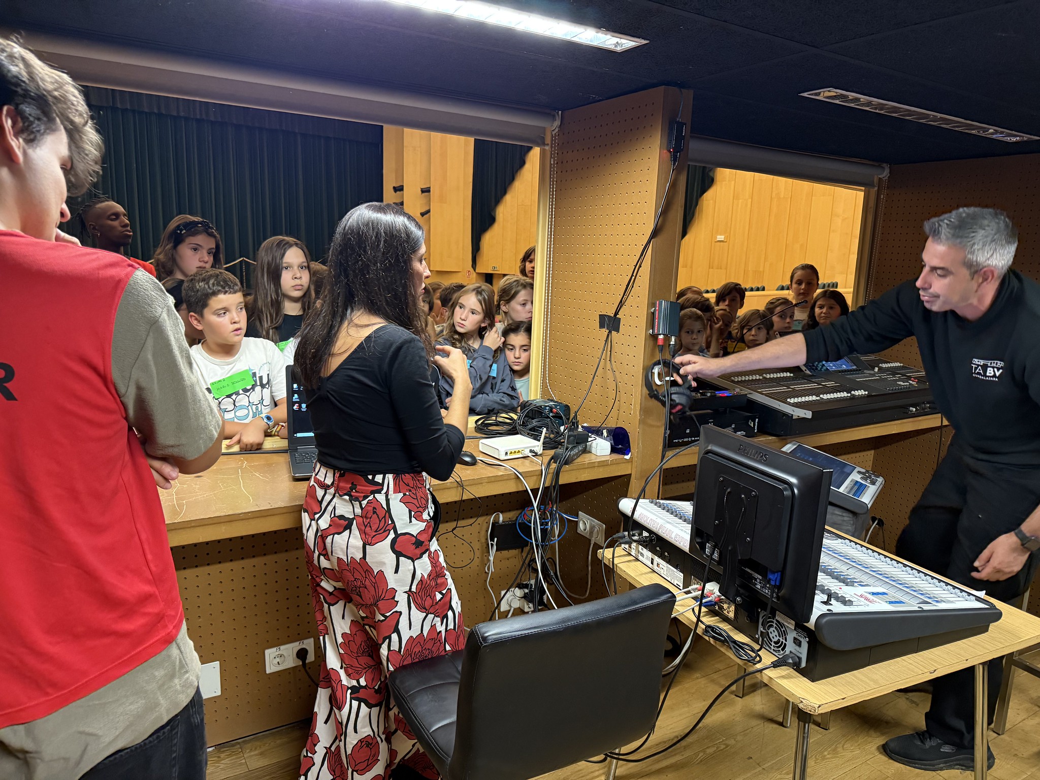 Uno de los momentos más destacados fue la visita guiada por el teatro, donde los técnicos explicaron el funcionamiento de cada espacio: