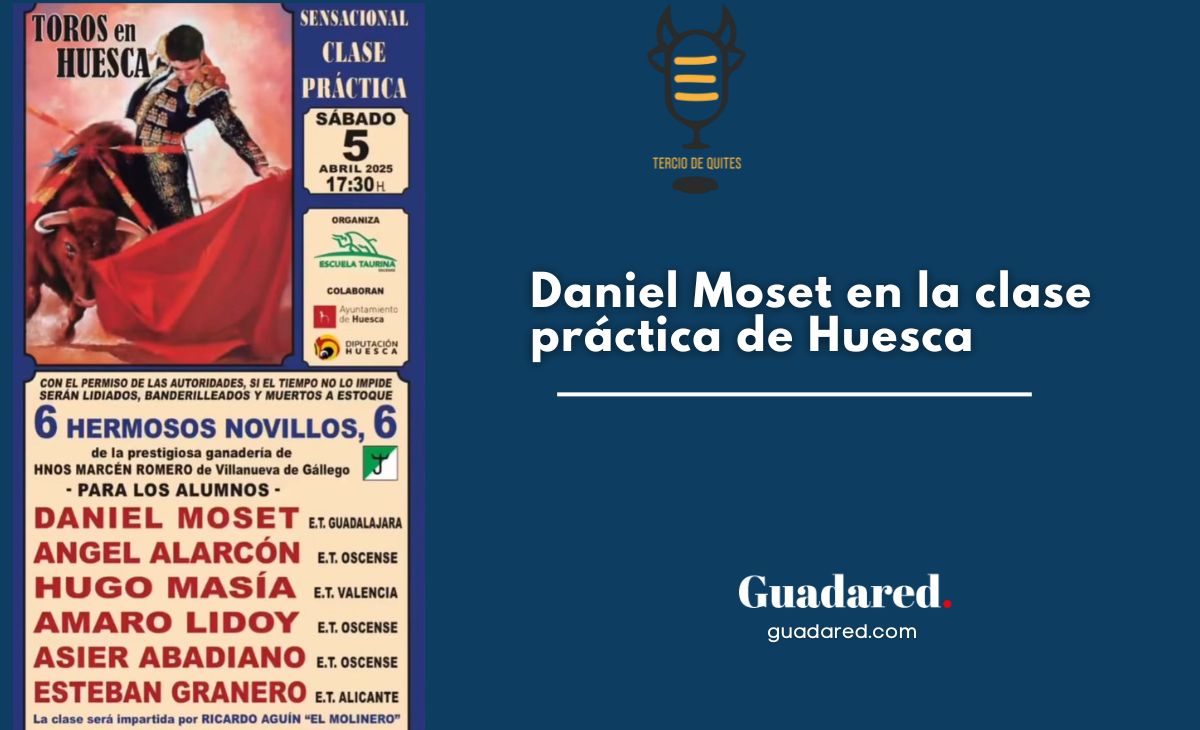 El joven torero Daniel Moset, alumno de la Escuela Taurina de Guadalajara, ha sido seleccionado como uno de los participantes en la clase práctica de Huesca, que se celebrará el próximo sábado 5 de abril a las 17:30 de la tarde en la emblemática plaza de toros de la ciudad aragonesa. Moset, junto a otros talentosos novilleros, tendrá la oportunidad de medirse con novillos de la ganadería de Marcén Romero, una de las más prestigiosas del panorama actual.