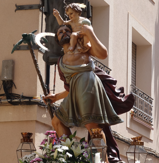 Tras la misa, la imagen de San Cristóbal recorre las calles acompañado por cofrades y vecinos.