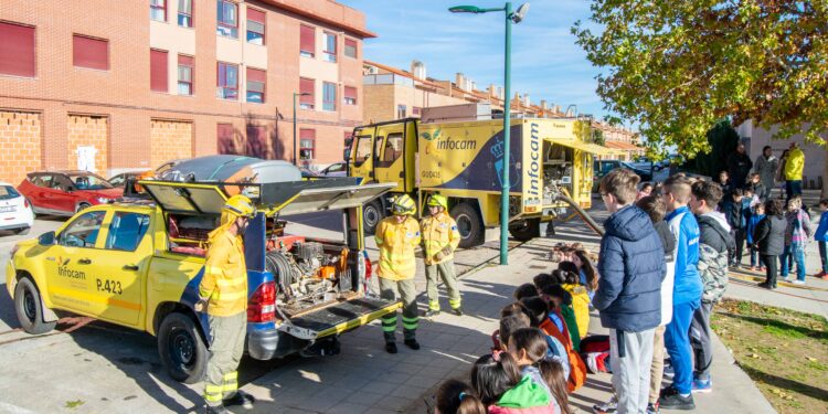 LOS BOMBEROS DEL INFOCAM Y LOS AGENTES MEDIOAMBIENTALES VISITAN MARCHAMALO EN EL MARCO DE LA II SEMANA DE LA CIENCIA.