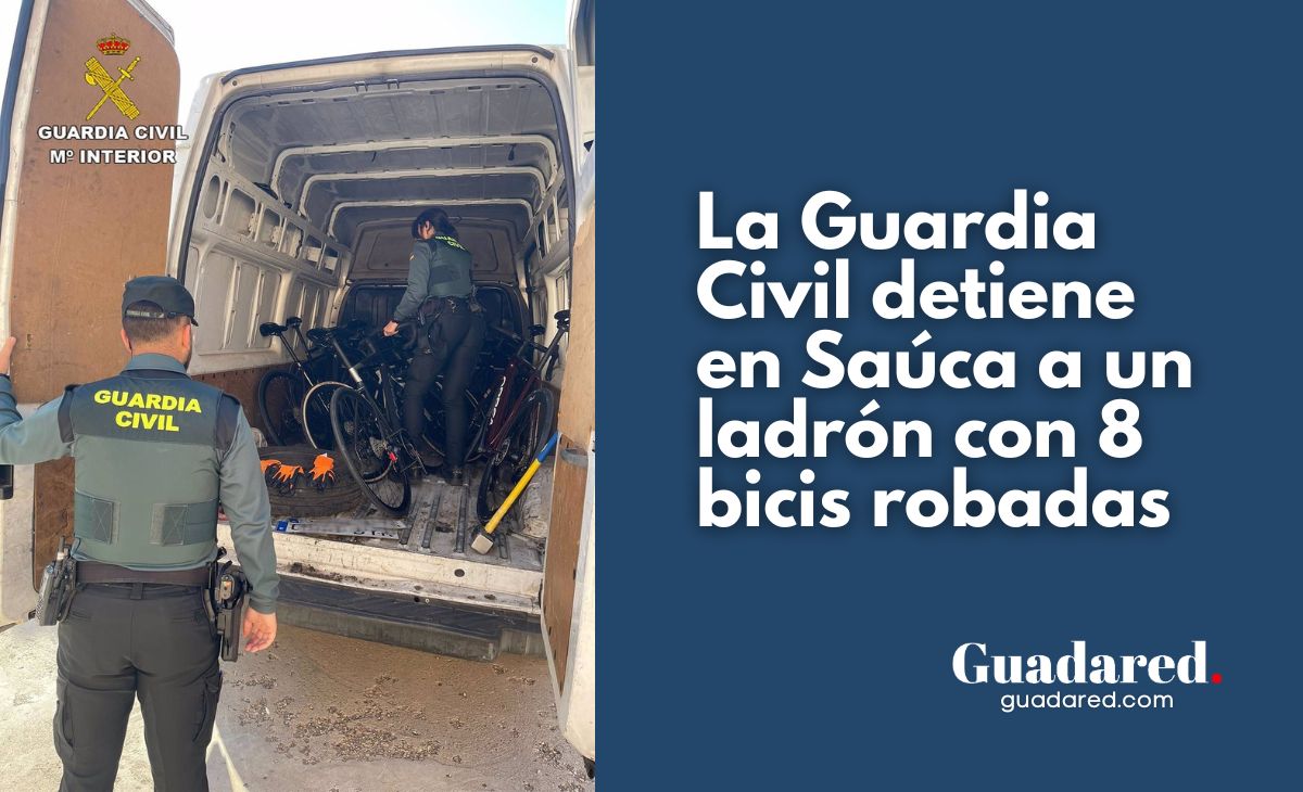 La Guardia Civil ha detenido en Saúca a un hombre de 29 años y nacionalidad rumana como presunto autor de un robo con fuerza en la localidad madrileña de Rivas-Vaciamadrid. El arrestado fue interceptado mientras transportaba en una furgoneta ocho bicicletas de alta gama valoradas en 33.000 euros.