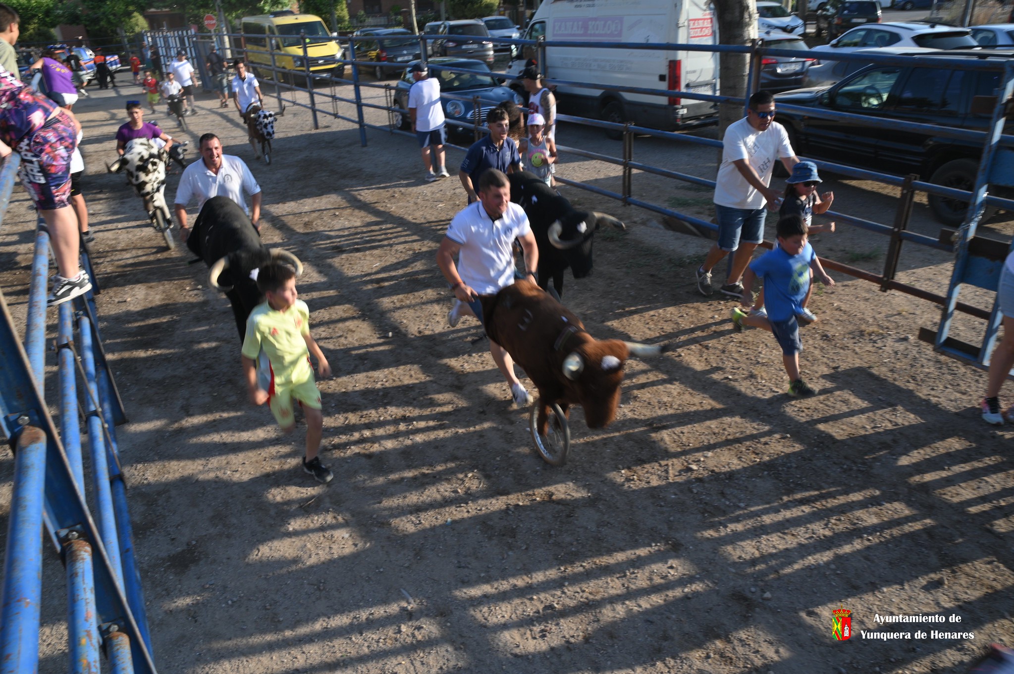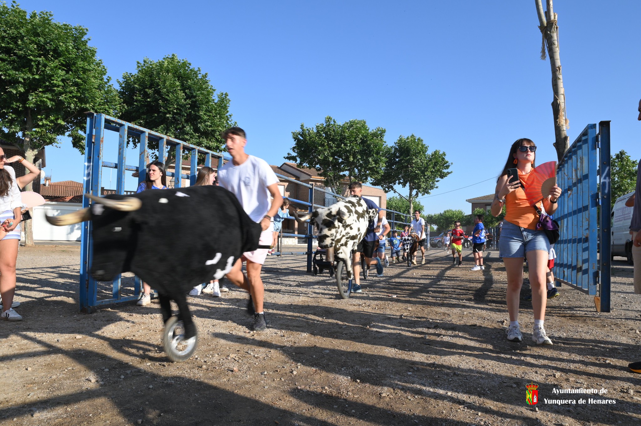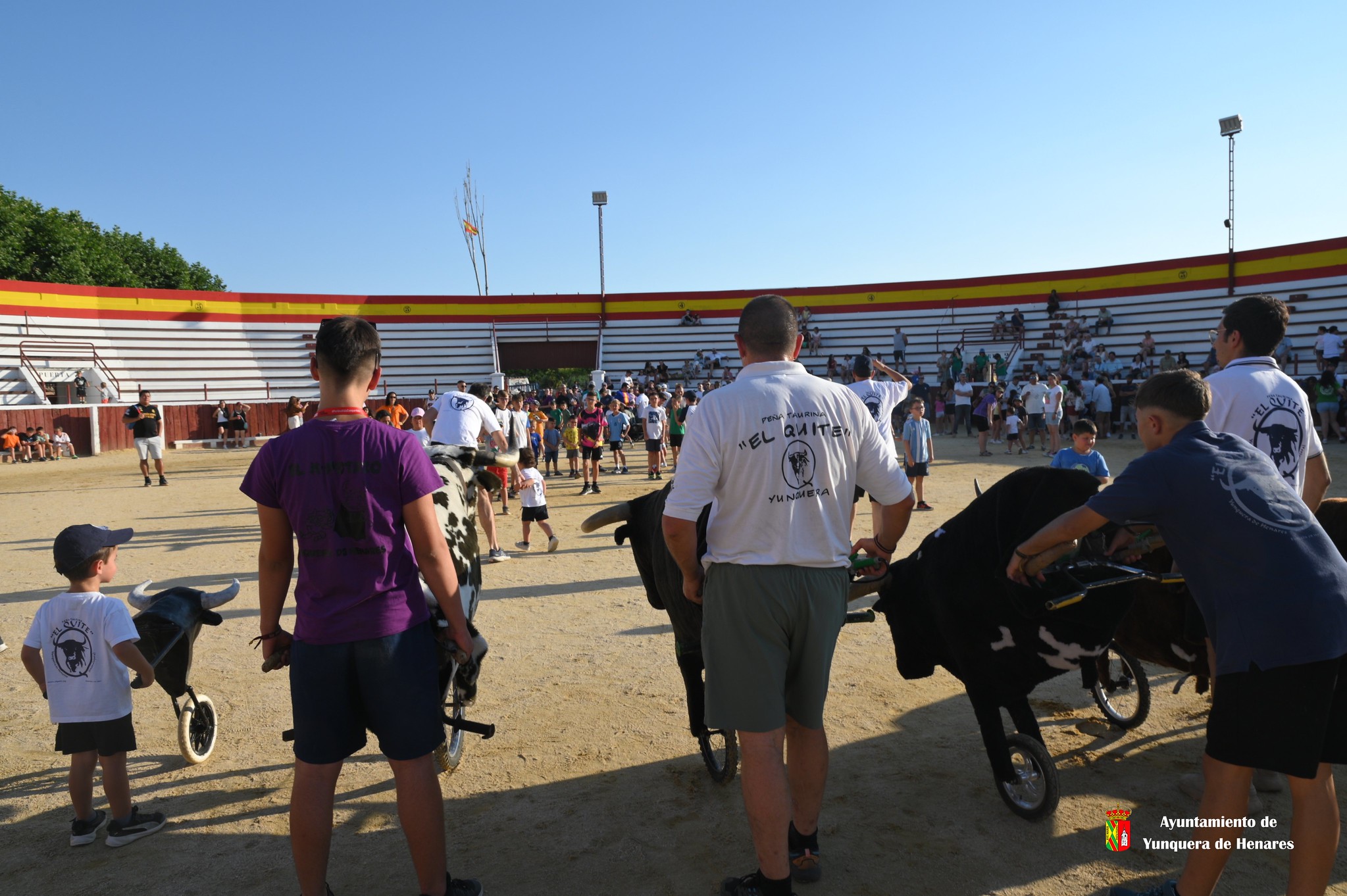 La Plaza de Toros Las Traviesas volvió a llenarse este sábado de risas, carreras y mucha emoción con el tradicional encierro de carretones, una cita esperada por los más pequeños durante las Fiestas de San Pedro 2025 de Yunquera de Henares.