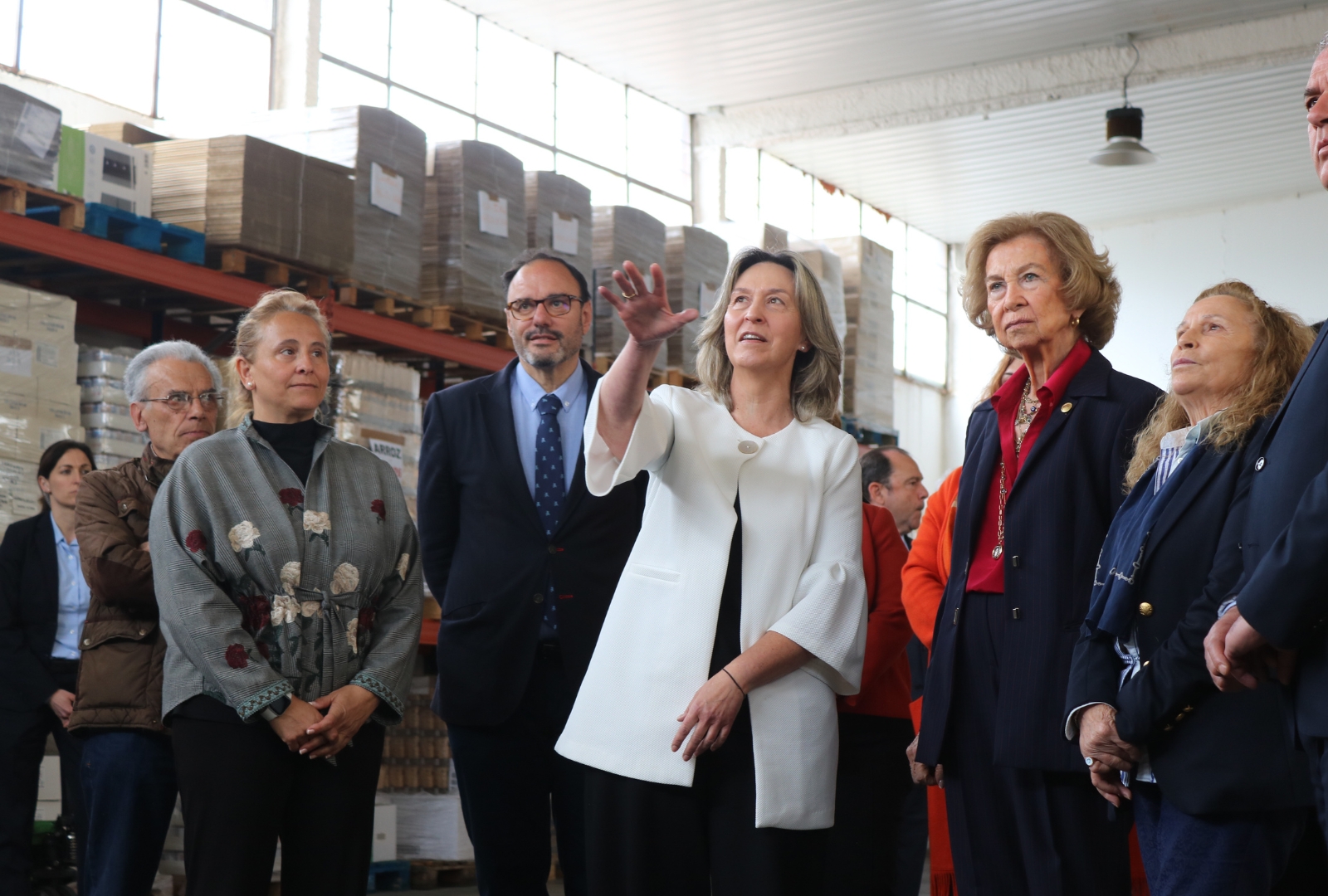 Acompañada por la alcaldesa de Guadalajara, Ana Guarinos, la presidenta del Banco de Alimentos, Carmen Hombrados, y representantes de la Federación Española de Bancos de Alimentos (FESBAL), Doña Sofía ha recorrido las instalaciones y ha mantenido una reunión informativa con responsables del centro y con voluntarios. También han estado presentes los concejales de Bienestar Social e Inclusión Social, Eva Henche y Roberto Narro.