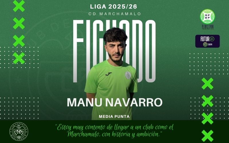 El CD Marchamalo sigue dando forma a su plantilla para la presente temporada con la incorporación de Manuel Navarro Sánchez, mediapunta madrileño de 24 años que ya ha tenido la oportunidad de estrenarse con la camiseta verdilla en el arranque liguero, dejando una grata impresión en sus primeros minutos de juego.