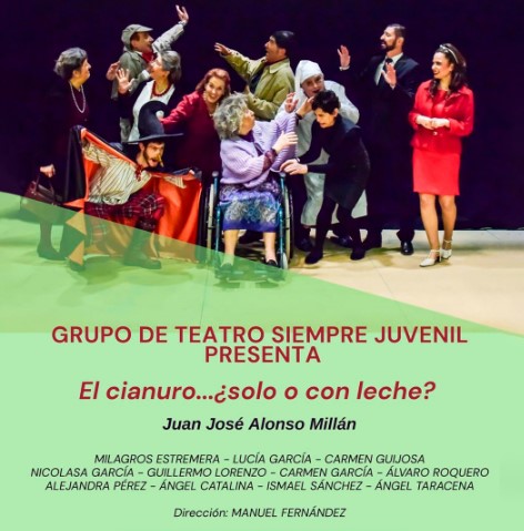 Yunquera de Henares ha vivido este fin de semana una doble cita con el teatro gracias a la representación de “El cianuro… ¿solo o con leche?” en el Centro Cultural Miguel de Cervantes. La obra, una comedia clásica del dramaturgo Juan José Alonso Millán, ha sido llevada a escena por el Grupo de Teatro Siempre Juvenil, que volvió a demostrar su buen hacer y su compromiso con la cultura local.