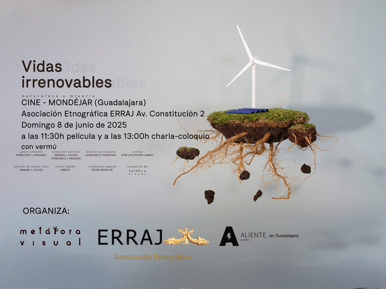 Tras la proyección, a las 13:00h, tendrá lugar un coloquio abierto con miembros del colectivo ALIENTE Guadalajara, organización comprometida con una transición ecológica justa y respetuosa con el medio rural. El acto se cerrará con un vermú informal para fomentar el diálogo entre asistentes, vecinos y participantes.