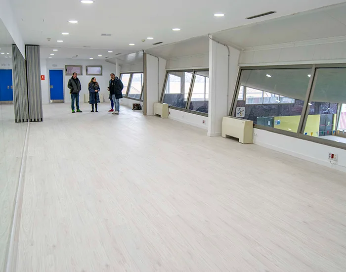 El Polideportivo García Fraguas es un referente en la localidad, albergando una pista para deportes de equipo, gimnasio, salas de fitness y wellness, y una piscina cubierta de 25 metros. La reforma ha transformado la primera planta, convirtiendo las antiguas oficinas del Servicio Municipal de Deportes en dos modernas salas wellness. La instalación de un tabique móvil permite fusionar los espacios, generando una sala de mayor amplitud cuando sea necesario. Para facilitar este cambio, las oficinas han sido trasladadas a un área previamente infrautilizada, adaptada para su nuevo uso.