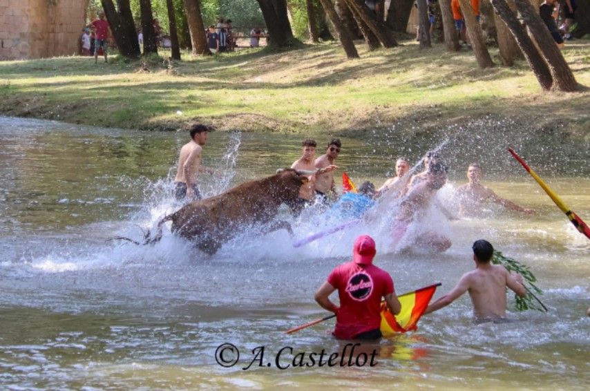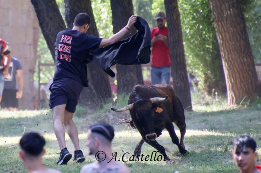 Sus imágenes documentan la suelta de cuatro vacas de la Ganadería María del Carmen Criado y transmiten la emoción que se respira en el aire. En la ribera del río, sin los límites de una plaza, el campo se convierte en escenario, donde el Henares actúa como albero natural y cómplice silencioso.