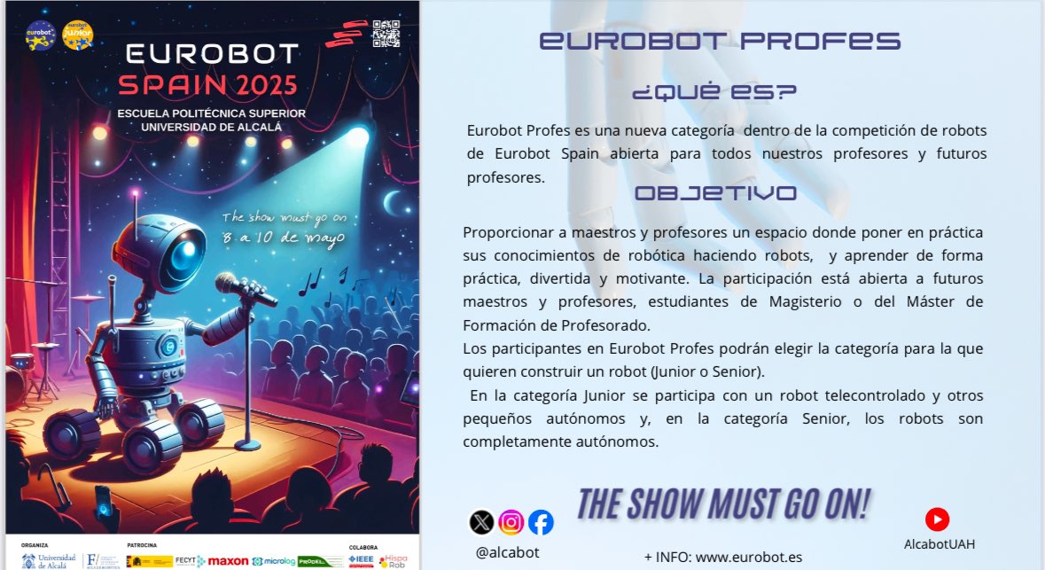 Como novedad destacada, este año se incorpora la categoría Eurobot Profes, diseñada para docentes que desean participar junto a sus estudiantes. Esta modalidad les permite formarse previamente en aspectos técnicos, promoviendo el trabajo conjunto entre profesorado y alumnado en proyectos reales de robótica.