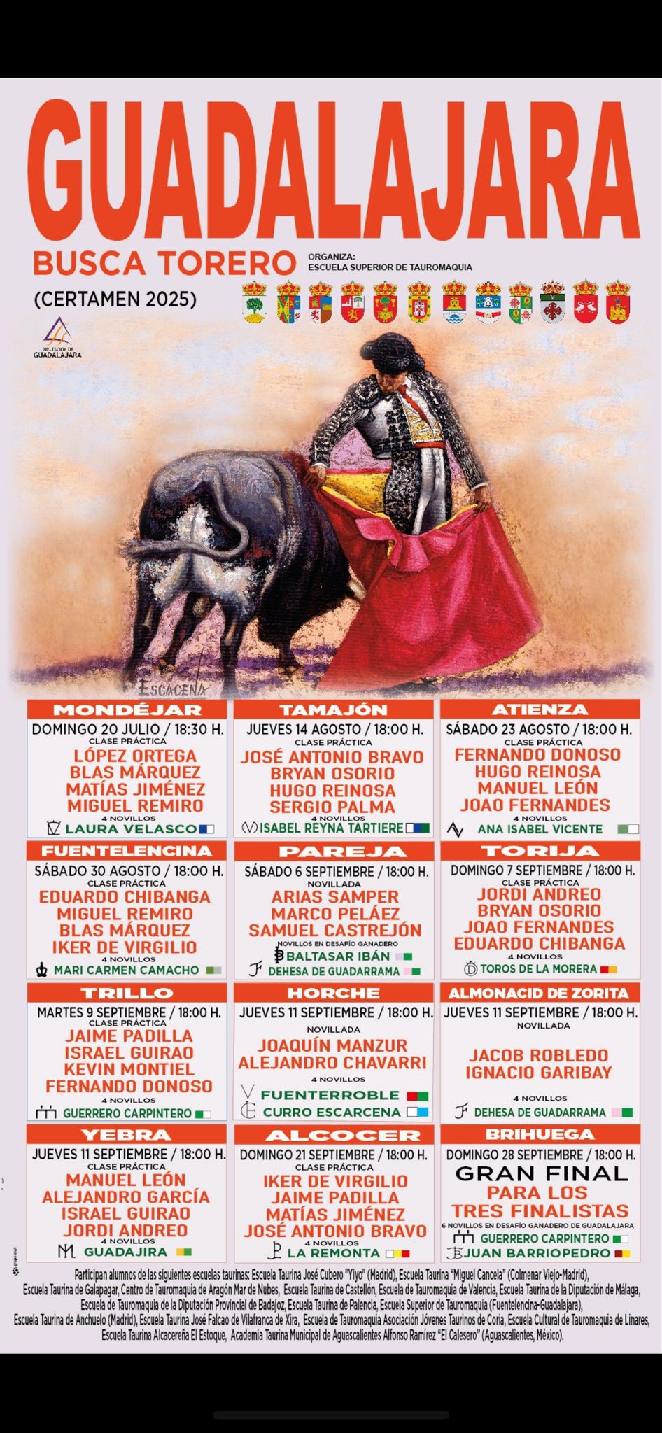 Destacado 28 septiembre @ 6:00 pm - 7:00 pm Gran Final Guadalajara busca torero. Brihuega Brihuega Calle Monjas Bernardas, 4,, Brihuega