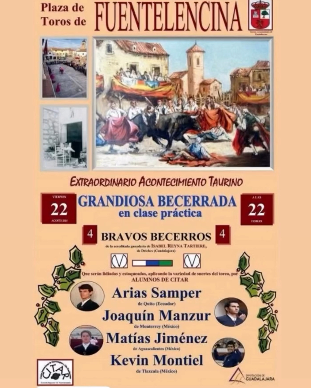 Destacado 21 septiembre @ 6:00 pm - 7:00 pm Clase práctica Guadalajara busca torero. Alcocer Alcocer Travesia Altozano, 7B,, Alcocer