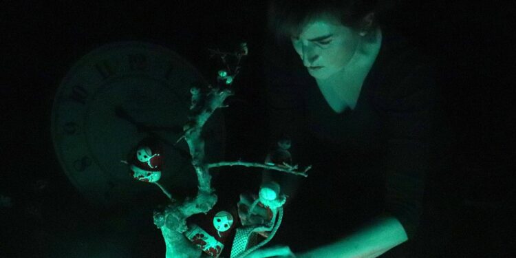 En lugar de sentarse en las butacas, el público se encontraba en el mismo escenario, rodeando una pequeña mesa de luz donde Marta Marco manejaba con habilidad muñecos de trapo y objetos mínimos. Esta disposición creó una experiencia de “teatro en pequeñito”, donde la audiencia estaba extraordinariamente cerca de la acción en el escenario.