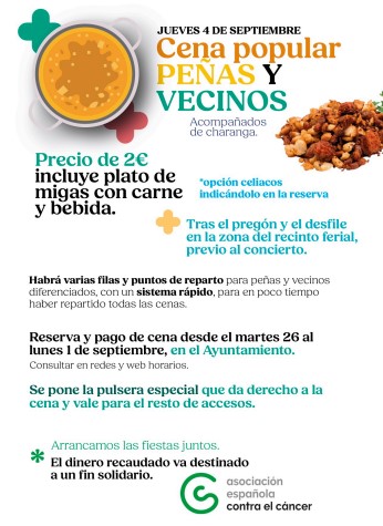 • Actividades solidarias, como la cena a beneficio de la AECC o la tapa solidaria en la Plaza Mayor, que refuerzan el carácter social de las fiestas.