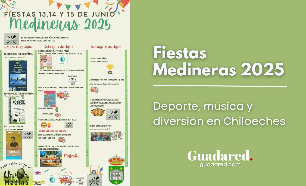 El barrio de Medina Azahara ya luce sus mejores galas para celebrar un año más las esperadas Fiestas Medineras 2025, que tendrán lugar del 13 al 15 de junio. Gracias al impulso de la Asociación Cultural Unión Medina, con el apoyo del Ayuntamiento de Chiloeches y diferentes colectivos locales, se ha preparado un amplio abanico de actividades que convertirán estos días en una auténtica celebración para todas las edades.