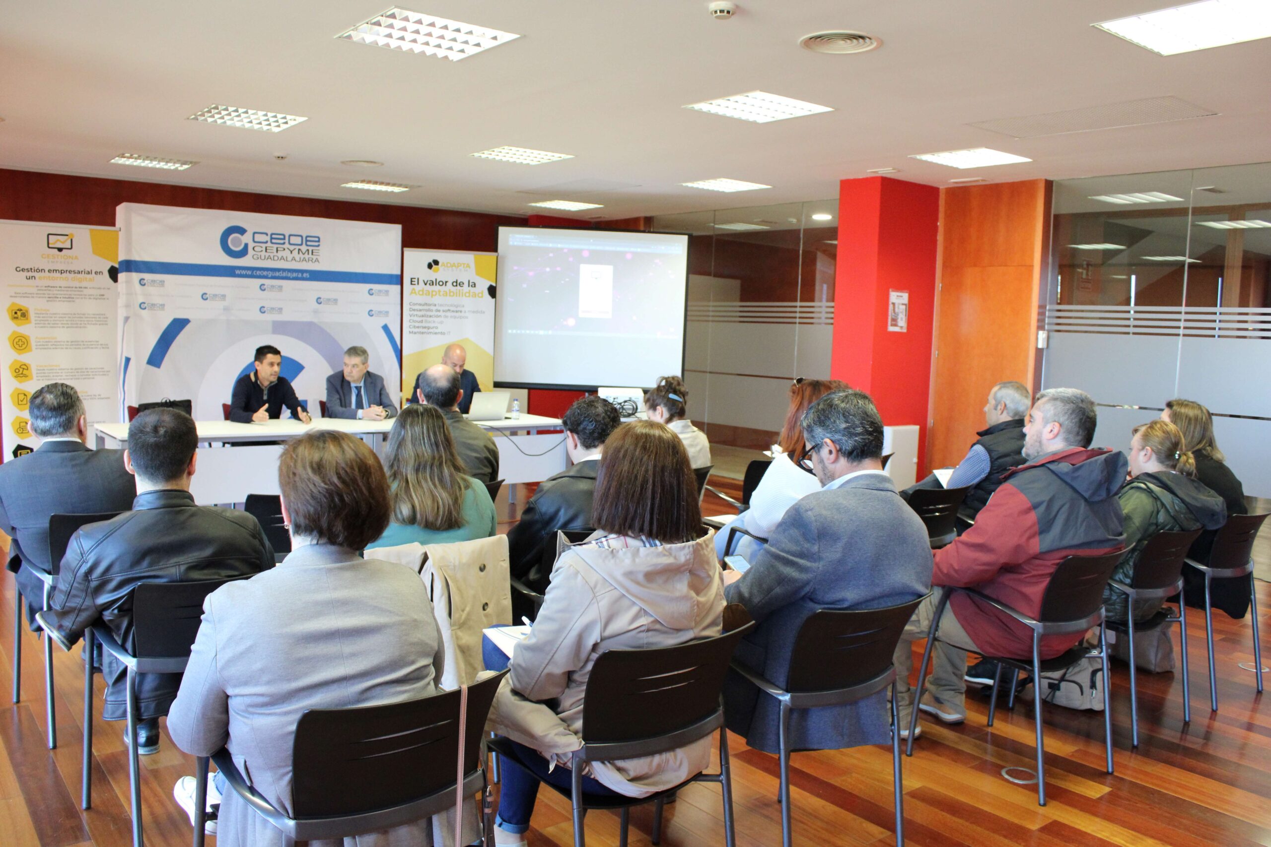 Los responsables de Adapta System, Iván Arriola y Sergio Estriégana, han sido los encargados de guiar a los asistentes a través de una demostración práctica del programa. Por su parte, Agustín Carrillo, director del departamento Jurídico de CEOE-CEPYME Guadalajara, ha expuesto los aspectos legales y la normativa vigente en materia de registro de jornada laboral.