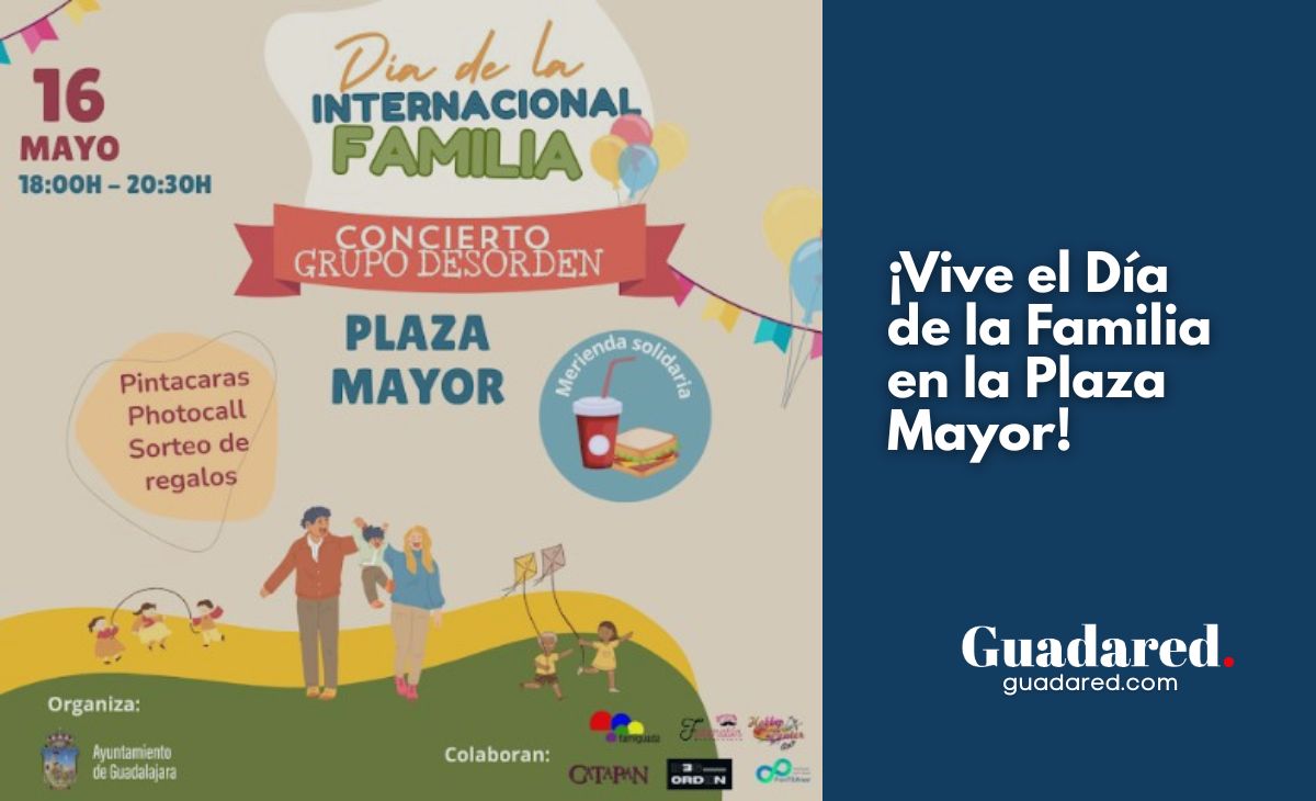 El Ayuntamiento de Guadalajara, a través de la Concejalía de Familia, organiza una gran fiesta en la Plaza Mayor para conmemorar el Día Internacional de la Familia. El evento se celebrará este viernes 16 de mayo, de 18:00 a 20:30 horas, y ofrecerá una amplia variedad de actividades gratuitas para todos los públicos.