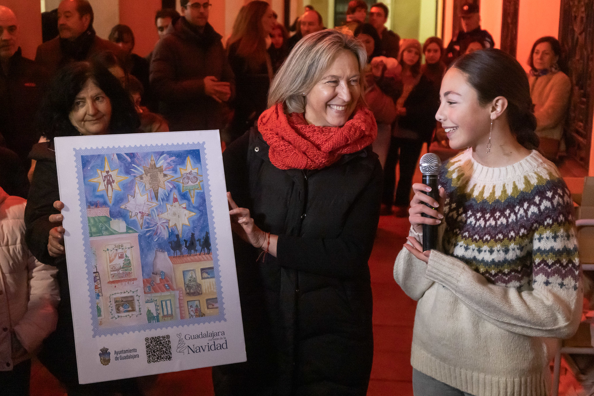 El encendido también sirvió como marco para la inauguración de la exposición del III Concurso de Dibujo del Cartel de Navidad, donde participaron 33 escolares. La ganadora, Brianda García, una alumna de 13 años del IES José Luis Sampedro, fue reconocida por su obra que captura la esencia de Guadalajara y el espíritu navideño. Brianda explicó que su dibujo se inspiró en la ilusión de los más pequeños con la llegada de los Reyes Magos, representados en su obra sobre los tejados de la ciudad.
