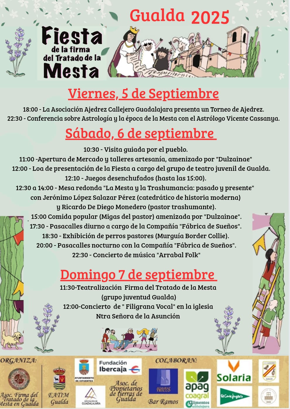 El evento incluyó actividades únicas: un pasacalle de “Fábrica de Sueños”, juegos desenchufados, un torneo de ajedrez organizado por “Ajedrez Callejero Guadalajara” y una conferencia sobre astrología a cargo de Vicente Cassanya. Además, se celebró una mesa redonda sobre la trashumancia actual y la historia del Concejo de la Mesta, con la participación de Jerónimo López-Salazar Pérez, catedrático de Historia Moderna, y Ricardo De Diego Monedero, pastor medioambientalista.