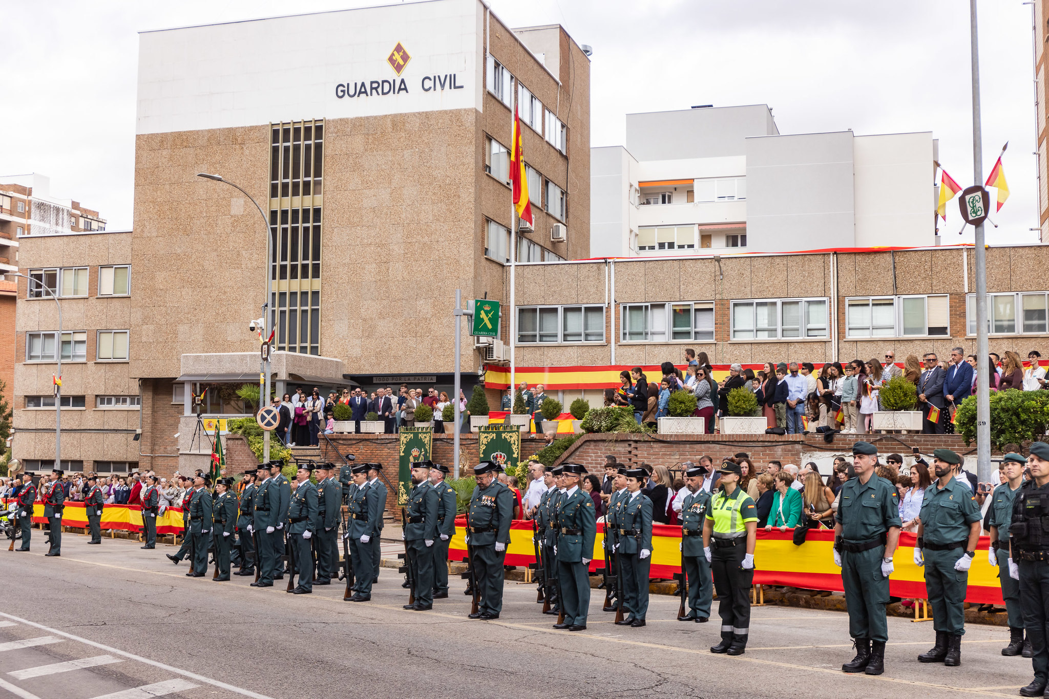 La Guardia Civil de Guadalajara ha celebrado un año más la festividad de su patrona, Nuestra Señora la Virgen del Pilar, en un emotivo acto institucional que reunió a autoridades, agentes y ciudadanos frente a la sede de la Comandancia, ubicada en la Avenida de Castilla desde 1976. La alcaldesa de Guadalajara, Ana Guarinos, y la subdelegada del Gobierno de España en Guadalajara, Susana Cabellos, han sido protagonistas de la jornada con sendos reconocimientos a la labor de la teniente coronel Cristina Moreno, que protagonizó su último acto oficial en la ciudad antes de su cambio de destino en noviembre.