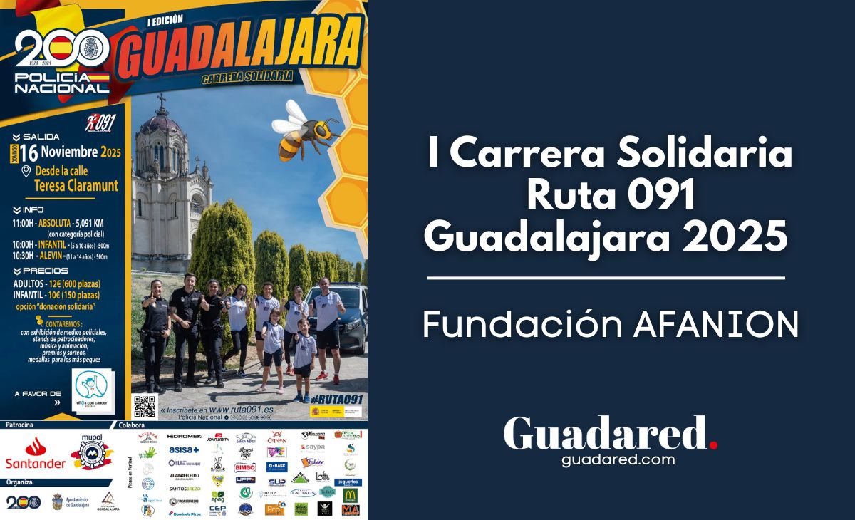 Participa en la I Carrera Solidaria Ruta 091 Guadalajara 2025 el 16 de noviembre. Apoya a Fundación AFANION y disfruta de un día de deporte y solidaridad.
