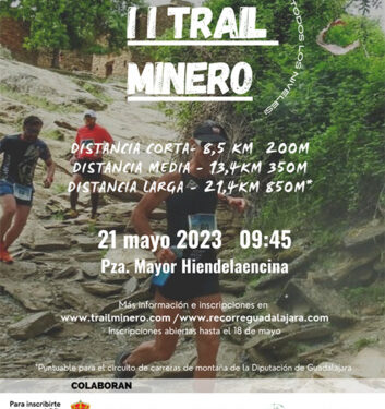 El próximo 21 de mayo, el municipio de Hiendelaencina y Villares de Jadraque acogerán II Trail Minero, organizado por el Club Deportivo Elemental Meta en colaboración con el Ayuntamiento de Hiendelaencina, Villares de Jadraque y la Diputación de Guadalajara.