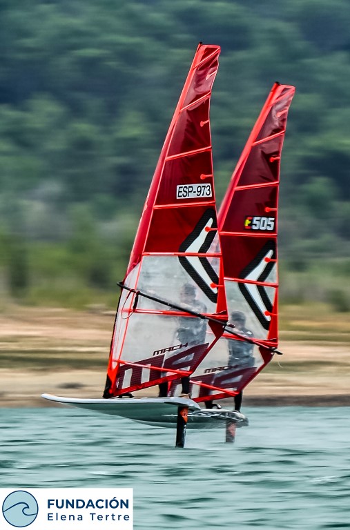 Clase Windsurfer: Competición con tramos de ceñida y popa, destacando la participación de Pilar Prieto, campeona de España en esta modalidad.