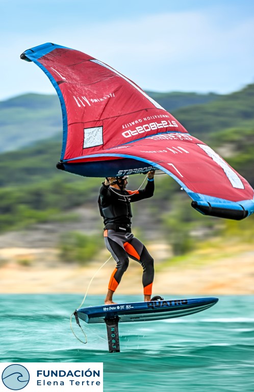Regata de Wingfoil: Navegación sobre tabla elevada por un ala, siguiendo un recorrido similar al Slalom de windsurf.