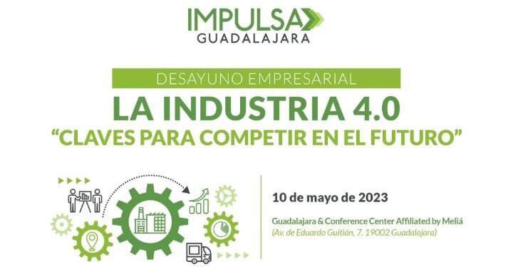 Desde ImpulsaGuadalajara, una iniciativa promovida por el Ayuntamiento de Guadalajara, la Diputación Provincial de Guadalajara, el Gobierno de Castilla-La Mancha, la Confederación de Empresarios de Guadalajara, CCOO y UGT, se invita a empresarios y emprendedores al Desayuno Empresarial sobre la Industria 4.0.