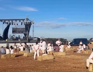 Como si todos los asistentes hubieran decidido vestirse de luz, el blanco lo inundaba todo. Prevalecía en los vestidos, en las camisas, en los pañuelos al viento. Era un blanco que no cegaba, sino que calmaba. Un símbolo de entrega, de belleza sencilla, de un grupo de personas, fans, acompañantes o redactores que vamos a trabajar y a comentar lo que alli aconteció, unidos por algo más grande que sí mismos.