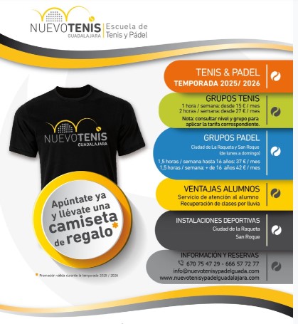 Los interesados en inscribirse tanto en la escuela como en el torneo pueden hacerlo a través de la web oficial: www.nuevotenisypadelguadalajara.com. También pueden solicitar más información llamando a los teléfonos 670 75 47 29 y 666 57 72 77 o enviando un correo a info@nuevotenisypadelguada.com.