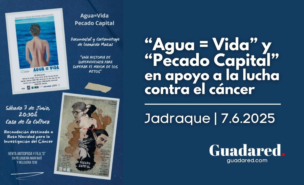 El próximo sábado 7 de junio, a las 20:30 horas, la Casa de la Cultura de Jadraque se convertirá en un espacio de emoción, reflexión y solidaridad con la proyección de dos potentes obras cinematográficas del director Leonardo Maícas: el documental Agua = Vida y el documental y cortometraje: 𝗣𝗲𝗰𝗮𝗱𝗼 𝗰𝗮𝗽𝗶𝘁𝗮𝗹.