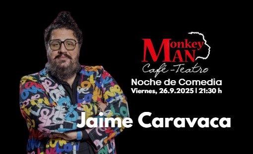 No te pierdas el monólogo de Jaime Caravaca en la Sala Monkey Man de Guadalajara el 26 de septiembre de 2025. Risas, improvisación y humor inteligente.