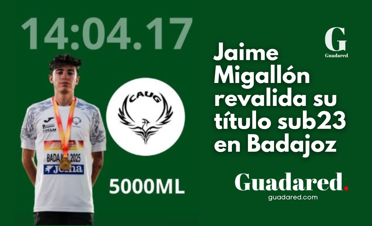 El atleta alcarreño Jaime Migallón Estríngana volvió a escribir una página brillante en su carrera deportiva este sábado en Badajoz, al proclamarse campeón de España Sub23 en los 5.000 metros lisos por tercer año consecutivo. Una gesta que le consolida como uno de los grandes referentes actuales del atletismo español, con un palmarés que ya alcanza los ocho títulos nacionales, una cifra al alcance de muy pocos deportistas de su edad.