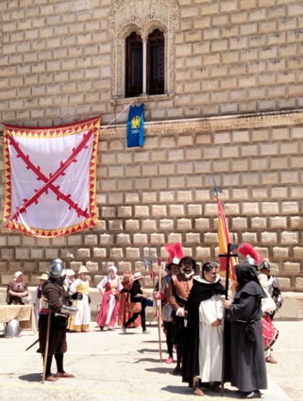 Desde el balcón del Ayuntamiento, Erundino Alonso, divulgador cultural, interpretó con solemnidad la carta fechada el 19 de marzo de 1493 que el duque de Medinaceli escribió a su tío, el cardenal Mendoza. En ella, con emoción contenida, se comunicaba el éxito del primer viaje de Cristóbal Colón.