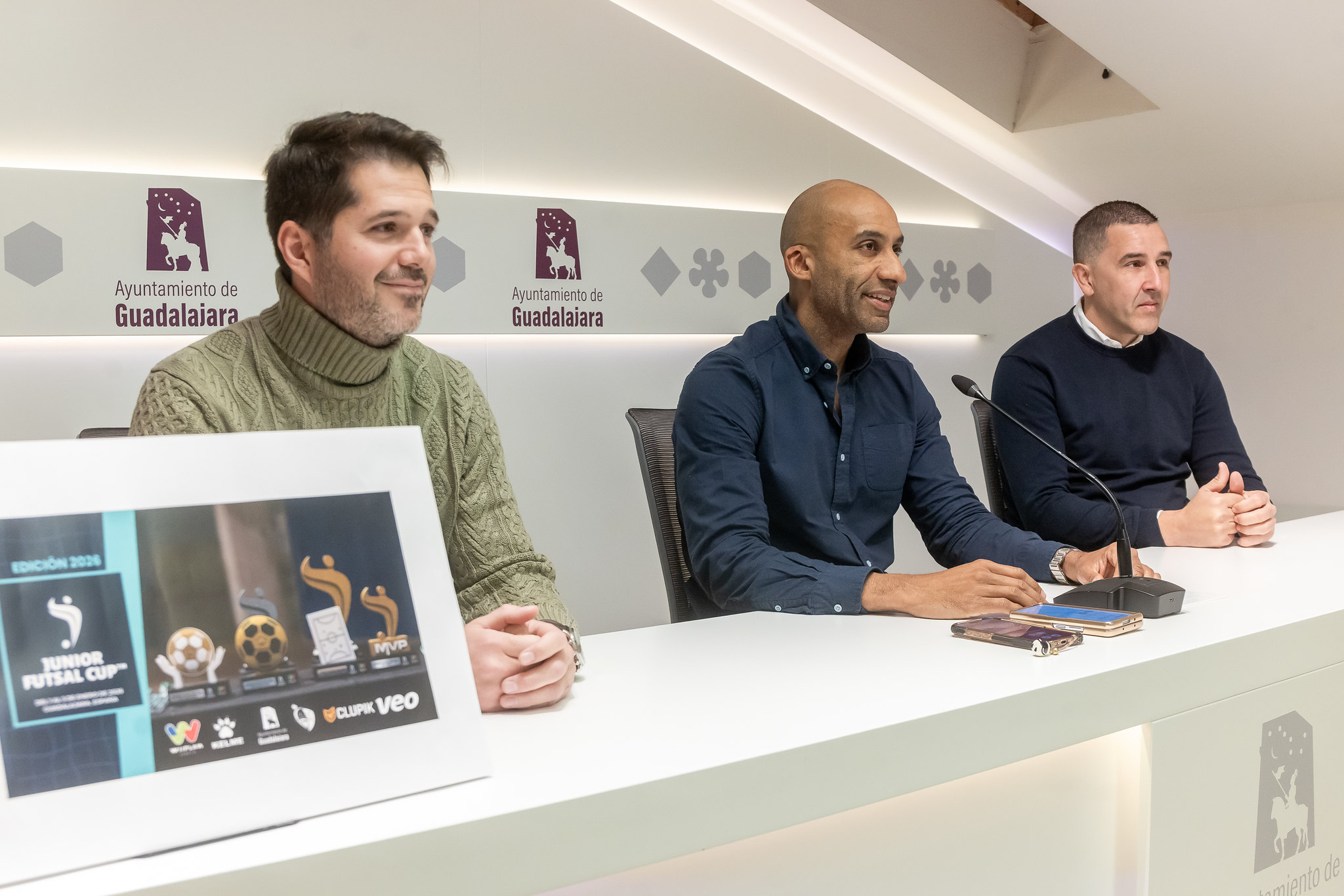 El concejal de Deportes del Ayuntamiento de Guadalajara, Armengol Engonga, presentó esta mañana la cuarta edición de la Junior Futsal Cup, acompañado por José Ruiz, director del evento, y Miguel Ángel García, director técnico.