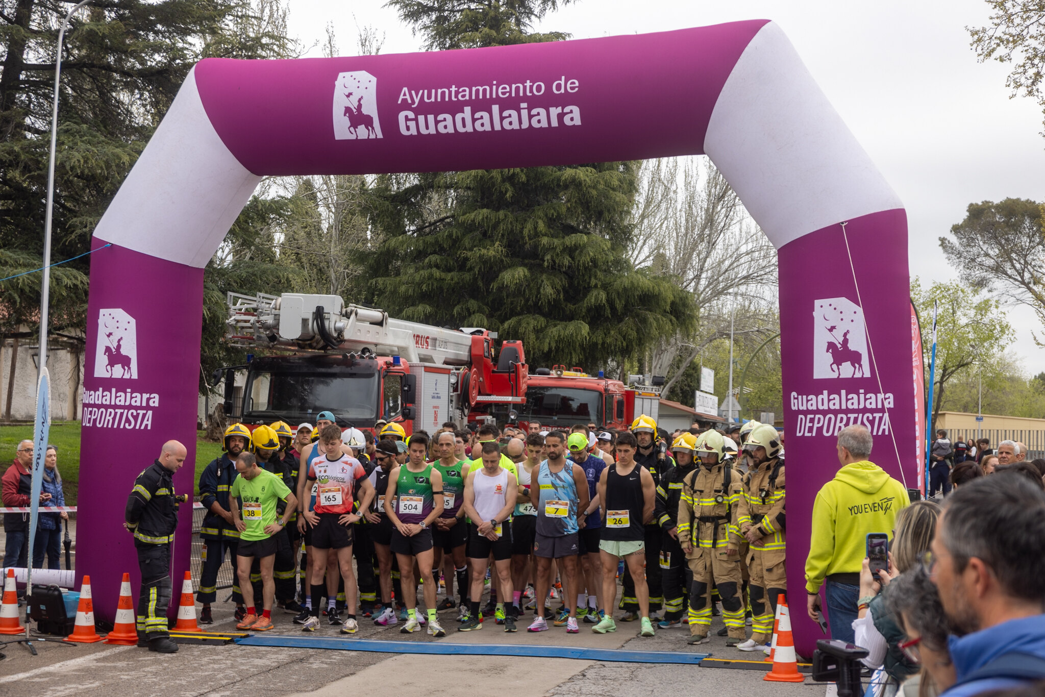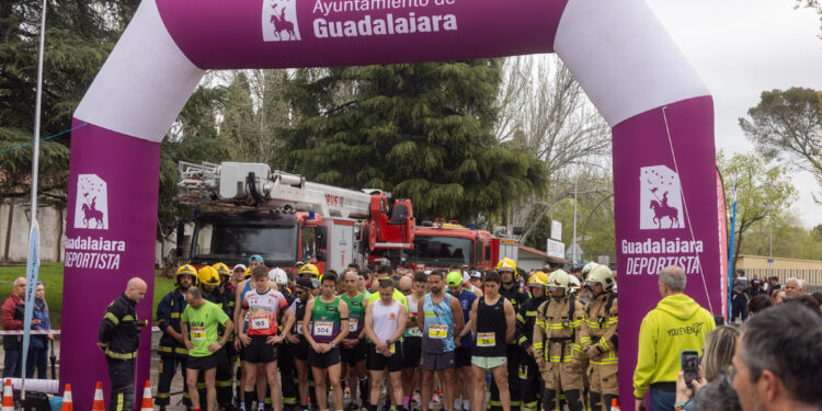 La prueba, organizada por el Club Deportivo Bomberos en colaboración con el Ayuntamiento de Guadalajara, arrancó puntualmente a las 11 de la mañana con un gesto lleno de simbolismo: un minuto de silencio en homenaje a los dos bomberos fallecidos recientemente en un incendio en Alcorcón, seguido de un sentido aplauso de todos los presentes.