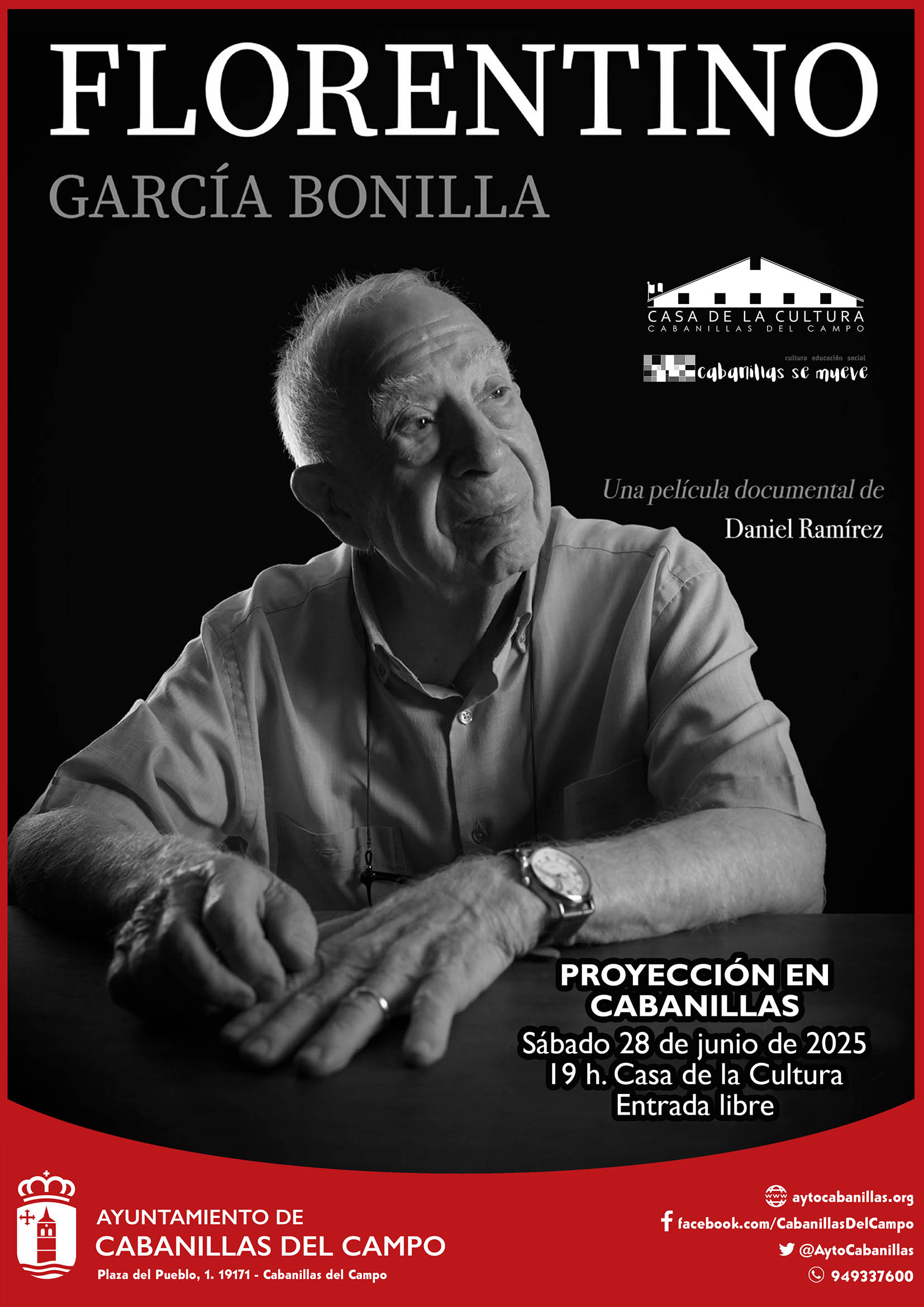 La Casa de la Cultura de Cabanillas del Campo acogerá el próximo sábado 28 de junio a las 19:00 horas la PROYECCIÓN DEL DOCUMENTAL “FLORENTINO GARCÍA BONILLA”, una cita imprescindible para quienes deseen conocer de cerca la figura de uno de los políticos más relevantes del Corredor del Henares. La entrada será libre hasta completar aforo.
