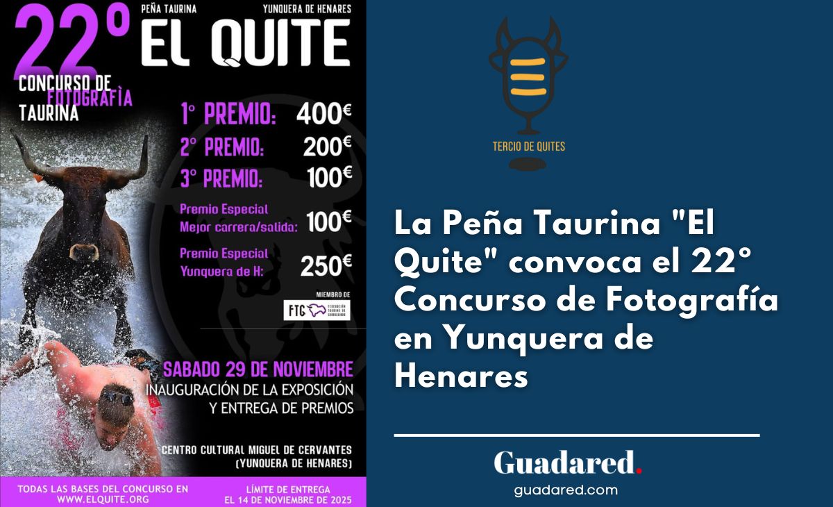 La Peña Taurina “El Quite” de Yunquera de Henares ha anunciado la convocatoria de su 22º Concurso de Fotografía, una cita ya consolidada en el calendario cultural local y muy esperada por los amantes de la fotografía y la tradición taurina.